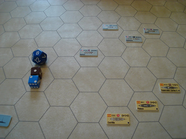 The US rolls low enough and closes in, with the Boston aiming to finish off the Castilla in one turn if possible! Even Raleigh should be effective now...